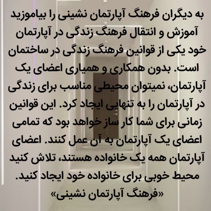 فرهنگ آپارتمان نشینی را به دیگران بیاموزیم