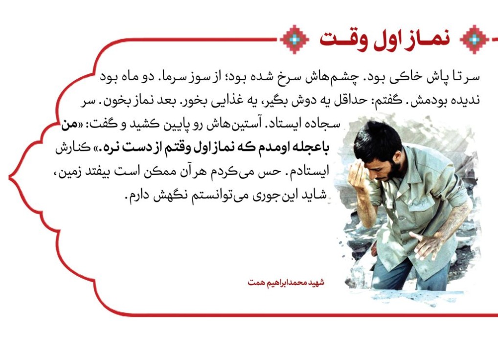 «إنّ شفاعتنا لاتناولُ مستخنّاً بالصلوة» همانا شفاعت ما (اهل بیت) به کسی که نماز را سبک بشمارد نمیرسد حضرت امام(ره) در کتاب آداب نماز مینویسند: «... پس، از اوقات آن (نماز) حتیالامکان محافظت کن. و اوقات فضیلت آن را انتخاب کن که در آن نورانیّتی است که در دیگر اوقات نیست. و اشتغالات قلبیّه خود را در آن اوقات کم کن بلکه قطع کن. و این حاصل شود به اینکه اوقات خود را موظّف و معیّن کنی و برای نماز که متکفّل حیات ابدی تو است، وقتی خاصّ تعیین کنی که در آن وقت کارهای دیگر نداشته باشی و قلب را تعلّقاتی نباشد؛ و نماز را با امور دیگر مزاحم قرار مده تا بتوانی قلب را راحت و حاضر کنی.»