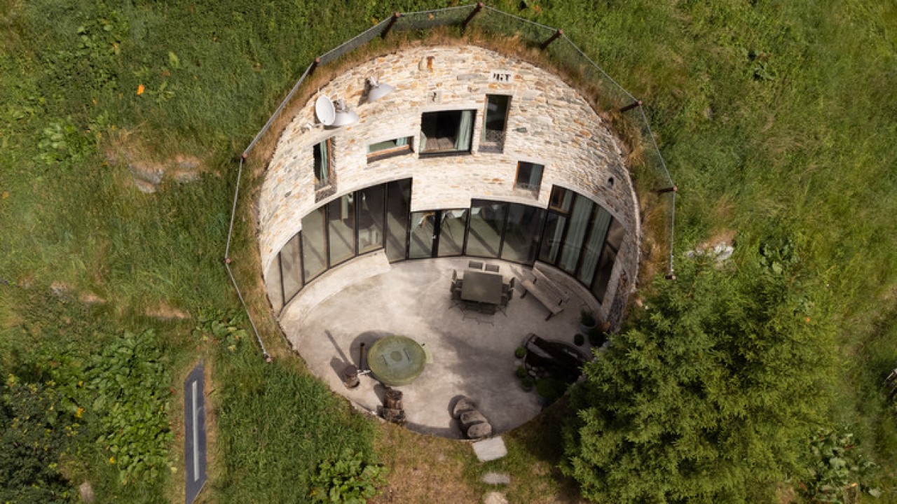 داستان: آیا نباید پنهان کردن خانه‌ای در دامنه آلپ و در عین حال بهره‌برداری از مناظر شگفت‌انگیز و ورود نور به ساختمان امکان‌پذیر باشد؟ مشتری با تعجب از اینکه ساخت دو خانه در نزدیکی حمام‌های آب گرم مشهور جهانی والس مجاز است، از فرصت استفاده کرد و بدون ایجاد مزاحمت برای مناظر وسیع حمام، سایت را توسعه داد. ورود یک پاسیوی مرکزی به شیب تند، نمای بزرگی با پتانسیل قابل توجه برای بازشوهای پنجره ایجاد می‌کند. زاویه دید از ساختمان کمی مایل است و منظره‌ای چشمگیرتر از کوه‌های بسیار زیبای طرف مقابل دره باریک ارائه می‌دهد. هشدار خیرخواهانه‌ی مقامات محلی مبنی بر اینکه طرح‌های مدرن غیرمعمول عموماً مورد استقبال قرار نمی‌گیرند، بی‌اساس از آب درآمد. برنامه‌ریزان از اینکه این طرح «مسکونی» به نظر نمی‌رسید یا به ساختمان حمام مجاور تحمیل نمی‌شد، خوشحال بودند. این طرح به عنوان یک سازه‌ی معمولی تلقی نمی‌شد، بلکه نمونه‌ای از توسعه‌ی عملی و بی‌سروصدا در مکانی حساس بود. قرار دادن ورودی از طریق یک انبار قدیمی در گرابوندر و یک تونل زیرزمینی، آنها را بیشتر متقاعد کرد که این طرح، اگرچه کمی نامعقول است، اما همچنان می‌تواند مجاز باشد. قوانین برنامه‌ریزی سوئیس تصریح می‌کند که تنها پس از ساخت یک مدل چوبی از حجم ساختمان در محل، می‌توان مجوز قطعی برنامه‌ریزی را صادر کرد. سپس این مدل می‌تواند توسط جامعه‌ی محلی به طور دقیق ارزیابی شود و در صورت نامناسب بودن، مورد اعتراض قرار گیرد. در مورد این طرح، منطق غالب بود و این بخش از فرآیند غیرضروری تلقی شد.